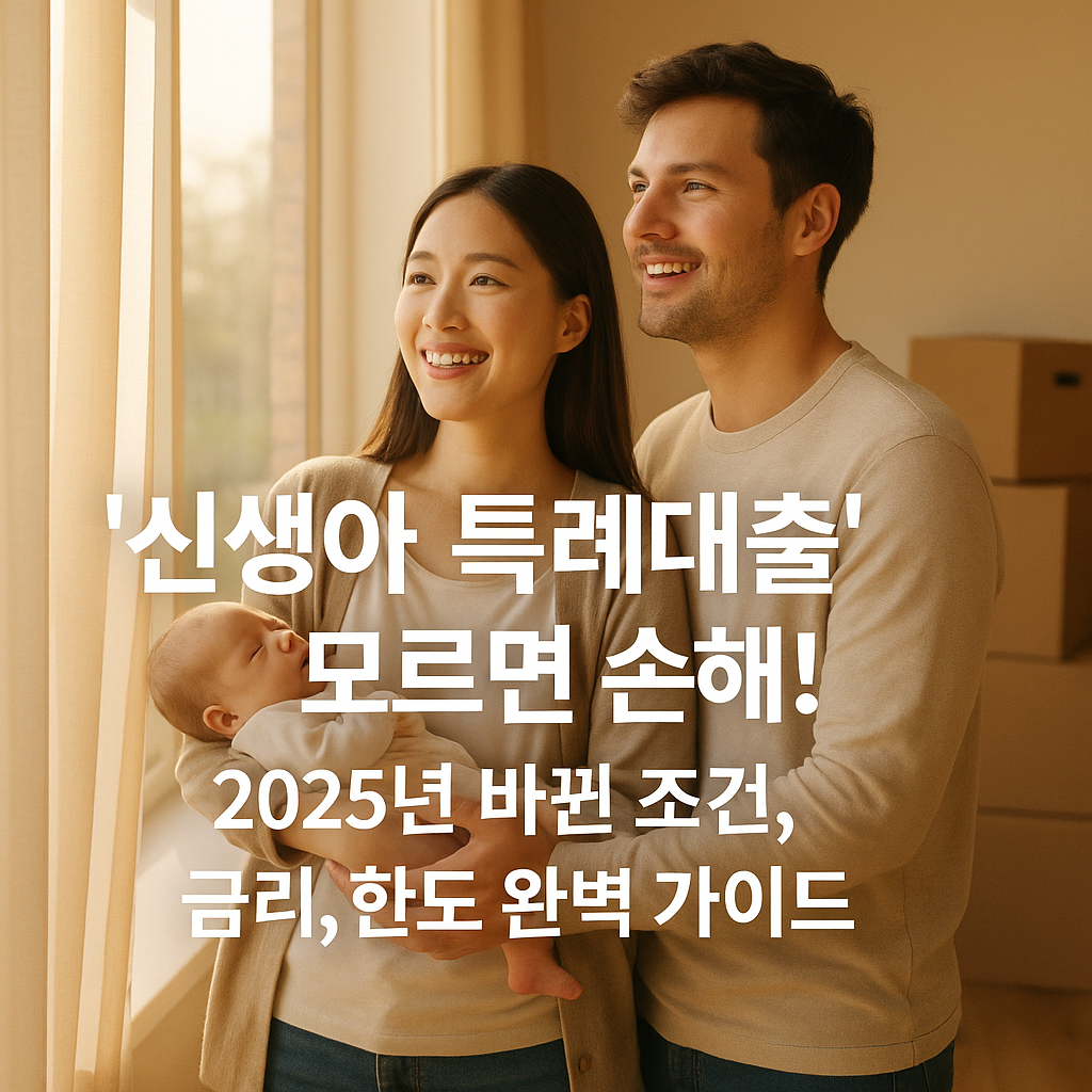 2025년, 내 집 마련의 마지막 골든타임이 될지도 모를 신생아 특례대출! 소득 2.5억까지 완화된 최신 자격 조건부터 신청 방법, 우대금리 꿀팁까지 모든 것을 총정리했습니다. 이 글 하나로 복잡한 고민을 끝내세요!