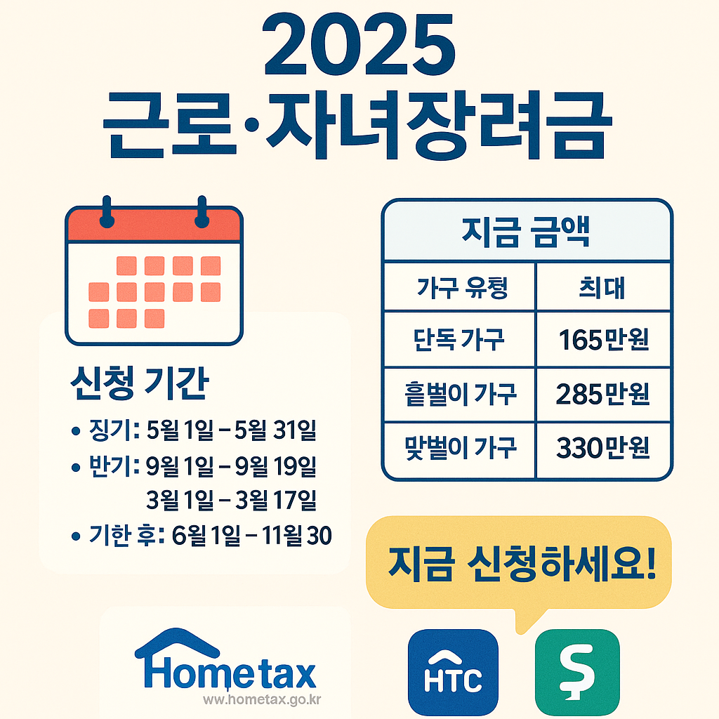 #근로장려금 #자녀장려금 #2025장려금신청 #홈택스신청 #저소득지원제도 #장려금지급일